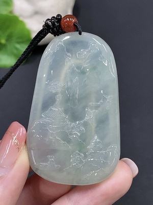 F26017469 Jadeite Landscape Pendant Total Weight Approx. 31.6g (Including Cord Weight) with Non-Jadeite Beads