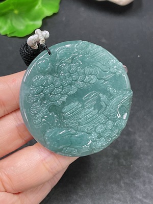 F34063992 Jadeite Landscape Pendant Total Weight Approx. 31.1g (Including Cord Weight)