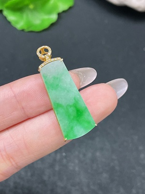 F35138570 Jadeite Plain Pendant with 18K Gold and Diamond Accents, Total Weight Approx. 3.95g