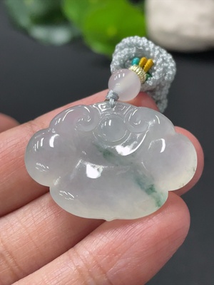 F33909385 Jadeite Ruyi Head Pendant Total weight about 9.67g With non-A grade beads