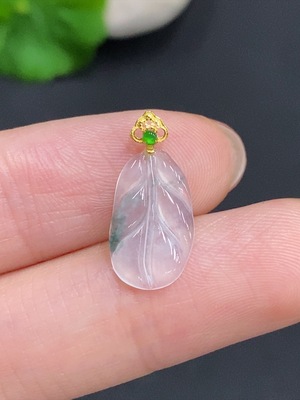 F35159632 Jadeite Leaf Pendant with 18k Gold Clasp, Total Weight Approx. 0.3g