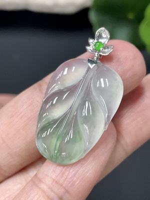 F28230373 Jadeite Leaf Pendant with 18K Gold Clasp, Total Weight Approx. 3.5g