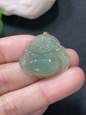 F28246780 Jadeite Buddha Pendant with 18K Gold Bail, Total Weight Approx. 2.25g