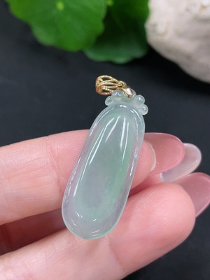 F34033164 Jadeite Auspicious Gourd Pendant, 18K Gold, Total Weight Approx. 2.9g