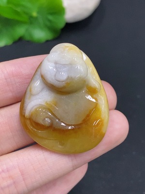 F30554868 Jadeite Laughing Buddha Pendant (Total weight: approx. 22.2g, color origin undetermined)