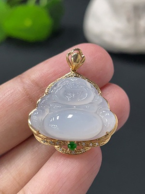 F34977484 Jadeite Buddha Pendant with 18K Gold and Diamond Accents, Total Weight Approx. 3.6g