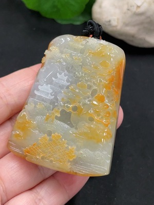 F33941985 Jadeite rough landscape plaque pendant with a total weight of approximately 47 grams containing other minerals
