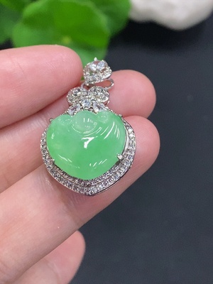 F35178312 Jadeite Pendant Buddha with 18k Clasp, Total Weight Approximately 6.4g