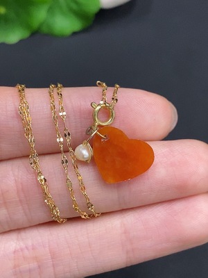 F35125207 Jadeite Peach Heart Pendant Non-Gold Inlaid Total Weight About 2g (Including Chain)