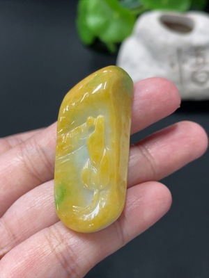 F34018997 Jadeite Enlightenment Pendant with a total weight of approximately 16 grams, yellow color origin undetermined