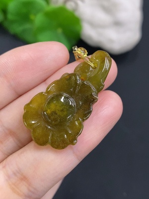 F27104581 Jadeite Blossom of Wealth and Honor Pendant Non-Gold Inlaid Total Weight Approx. 4.9g (Color Origin Undetermined)