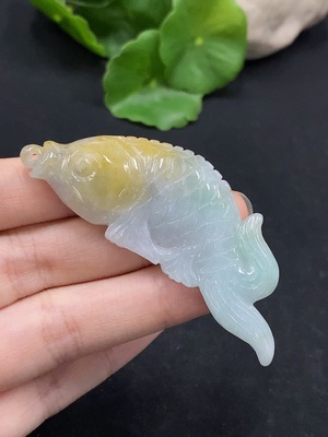 F32788406 Jadeite Lotus and Fish Pendant, Color Origin Undetermined, Total Weight Approx. 17.69g