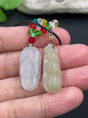 F37393951 Jadeite Pendant Fu Dou Leaf with Non-A Beads Total Weight Approx. 7.75g Non-Gold Clasp