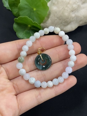 F37453825 Jadeite Bracelet + Pendant, Approx. 5.8mm, Non-Gold Inlaid, Total Weight Approx. 10.85g, Non-Gold Clasp