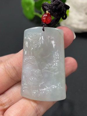 F35172946 Jadeite Pendant Landscape Plaque Total Weight Approximately 15.14g Including Rope