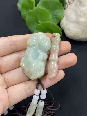 F38508283 Jadeite Dragon Pendant Total Weight Approx. 55.17g (Including Rope Weight) With Non-Grade A Beads