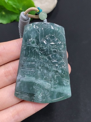 F36244305 Jadeite Landscape Pendant Total Weight Approx. 32.8g with Non-Grade A Beads
