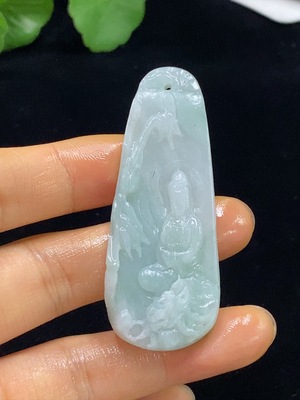 F26962968 Jadeite Pendant Landscape Plaque Ruyi