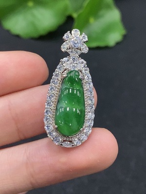 F34068495 Jadeite Leaf Pendant Total Weight Approx. 7.68g