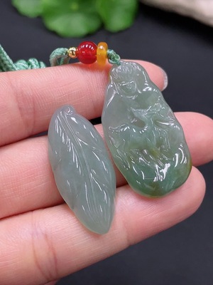 F25906964 Jadeite Leaf/Deer Pendant with Non-Grade A Beads