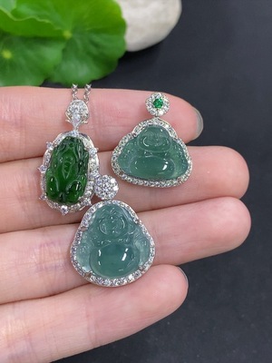 F35127105 Jadeite Buddha pendant with 18K gold buckle, total weight approximately 6.2g (set with diamonds)