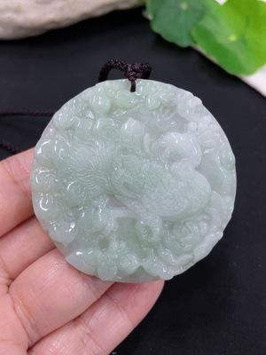 F39588734 Jadeite Peacock Pendant Total Weight Approx. 26.4g (Including Rope Weight)