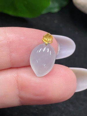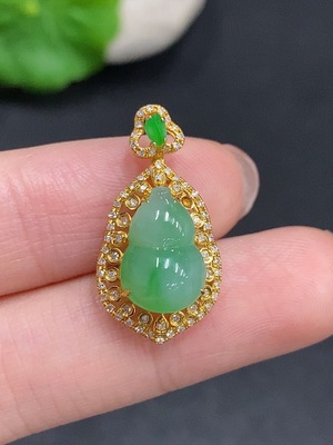 F36207546 Jadeite Gourd Pendant 18k Gold Inlaid Total Weight Approx. 0.78g