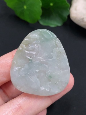 F30526590 Jadeite rough lotus leaf pendant, total weight about 14g