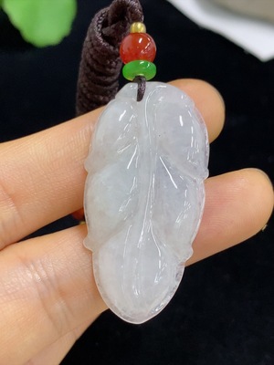 F38537068 Jadeite Leaf Pendant Total Weight Approx. 10.97g (including rope weight) with non-A grade bead