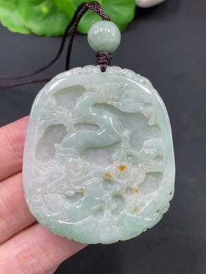 F37400316 Jadeite Pendant with Non-A Grade Beads, Inclusions Present, Total Weight Approximately 36.29g