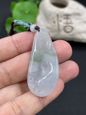 F34966843 Jadeite Fortune and Longevity Pendant, Total Weight Approx. 9.9g