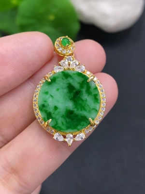 F33906842 Jadeite Plain Pendant Pendant with 18K Gold, Total Weight Approx. 1.8g