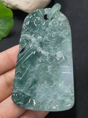 F35088782 Jadeite Pendant of Fortune, Prosperity, and Good Fortune, Total Weight Approximately 10g