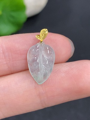 F39647611 Jadeite Leaf Pendant with 18k Gold Clasp, Total Weight Approximately 0.6g