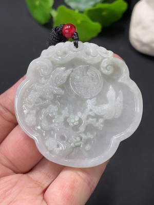F25915778 Jadeite Magpie on Plum Branch Pendant