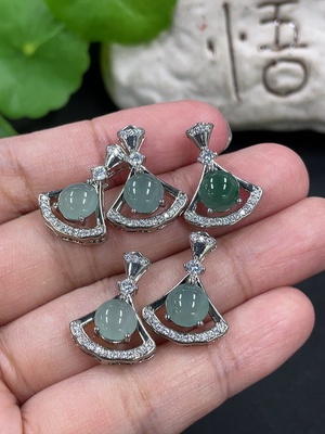 F37353971 Jadeite Cabochon Inlaid Pendant Sell as a Lot Non-Gold Inlaid