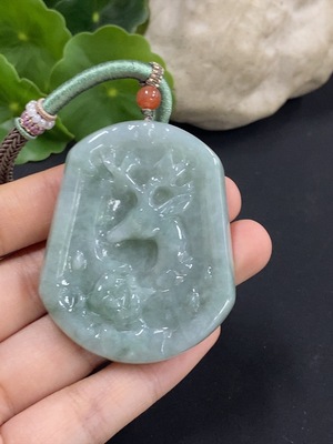 F38520929 Jadeite Deer Pendant, Total Weight Approx. 37.4g (Including Rope Weight) (Matching Beads Non-A)