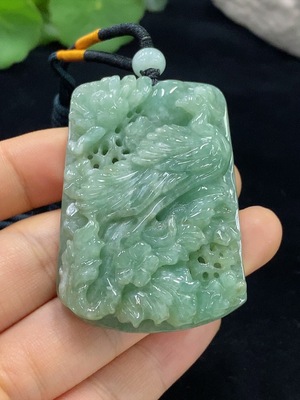 F27159692 Raw Jadeite Pendant "First-Class Green Lotus" with Other Mineral Components, Total Weight Approx. 29.59g