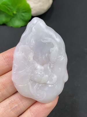 F27159694 Unpolished Jadeite Pendant of Supreme Lotus with Other Mineral Components, Total Weight Approx. 17.43g