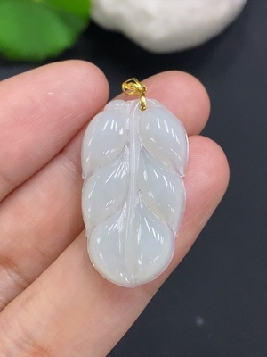 F27137607 Jadeite Leaf Pendant with 18K Gold Clasp, Total Weight Approximately 3.1g