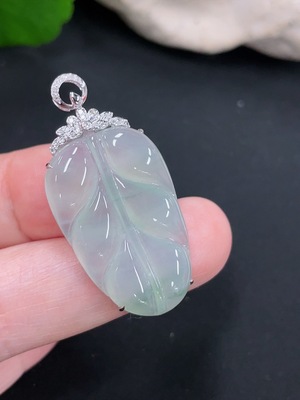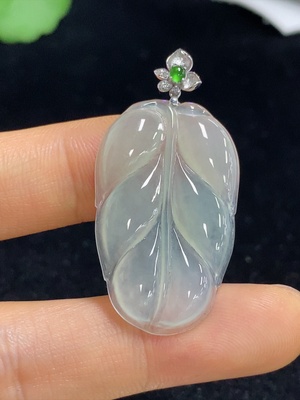 F38476405 Jadeite Pendant Leaf 18k with Diamond Accents Total Weight Approx. 4.34g