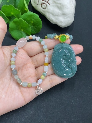 F30528811 Jadeite Pendant with Bead Chain Sell as a Lot Non-Gold Inlaid (Top/Accent Beads Not Grade A) (Color Origin Undetermined)