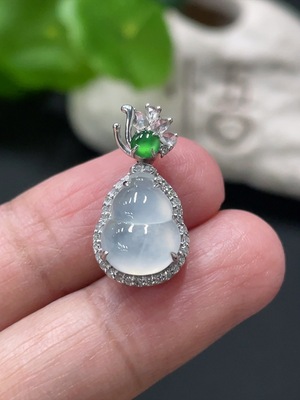 F37419634 Jadeite Gourd Inlaid Pendant 18K Gold Total Weight Approx. 0.8g (with Diamond Accents)