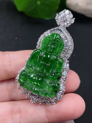 F35181088 Jadeite Guanyin Inlaid Pendant Non-Gold Inlaid Total Weight Approx. 24.02g