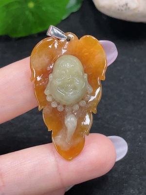F33917542 Jadeite Buddha Pendant Total Weight Approx. 7g Non-Gold Inlaid Yellow Part Color Origin Undetermined