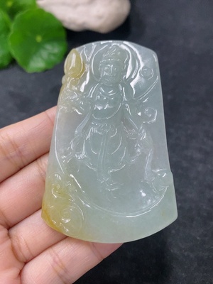 F34954025 Jadeite Pendant Guanyin, Total Weight Approx. 31.68g, Yellow Part Color Origin Undetermined