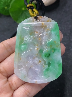 F31637312 Jadeite Landscape Pendant Total Weight Approx. 41.68g (Including Cord Weight) With Non-Grade A Beads