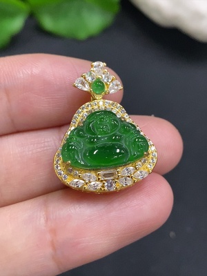 F36244869 Jadeite Buddha Pendant Inlaid Without Gold Total Weight Approx. 3.9g (Inlaid Stones Not Grade A)