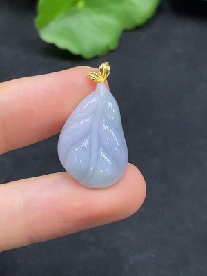 F30549716 Jadeite Leaf Pendant with 18K Gold Clasp, Total Weight Approx. 2.53g