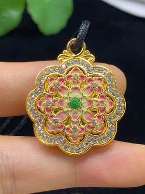 F34976996 Jadeite Inlaid Peace Pendant with 18K Gold and Diamond Accents, Total Weight Approx. 4.15g